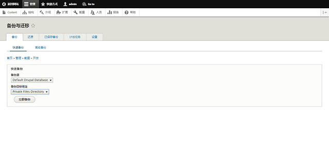 显然,drupal8.7.6的常规思路是,系统已有功能直接使用;反之,系统暂时没有的功能,通过安装插件实现。白龙是用第三方模块BackupandMigrate来实现的。