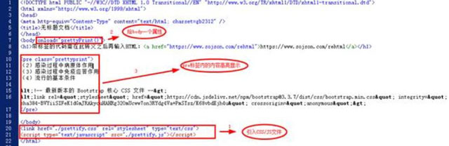 3.高亮显示内容要放在<preclass="prettyprint">高亮显示内容</pre>标签内。